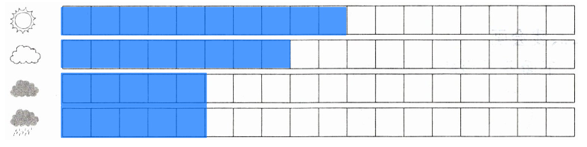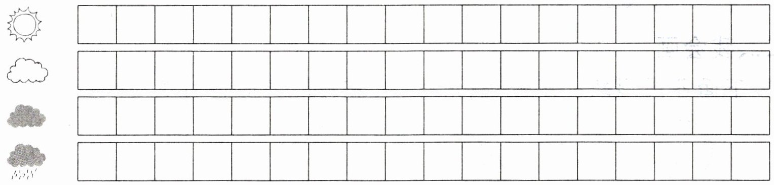 2. 请在下面格子里把各种天气的天数涂上不同的颜色,来表示它们的天数。