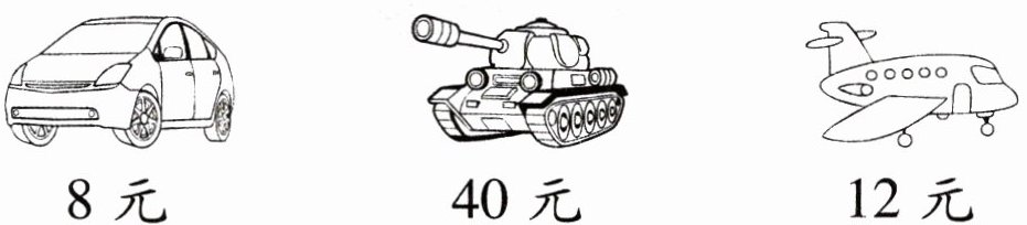 答案:$8+12 = 20$(元),可以买一辆玩具汽车和一架玩具飞机(答案不唯一,还可以有其他组合,如只买一辆玩具汽车和剩下钱数等情况合理即可)。