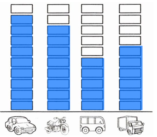 3. ( )车最多,( )车最少,最多的比最少的多( )辆。