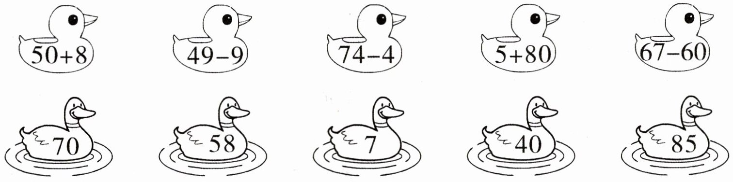 本题可先分别计算出上方算式的结果,再与下方对应的天鹅身上的数字相连。