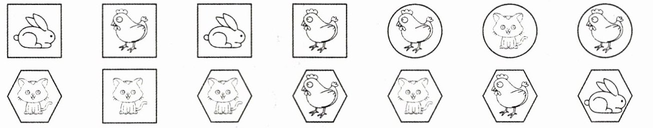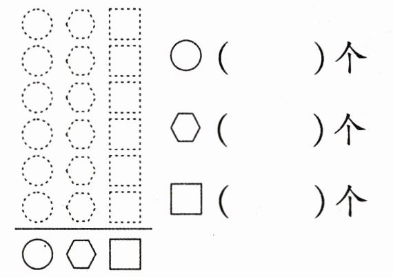 (2) 按卡片的形状分一分,在下面涂一涂,填一填。