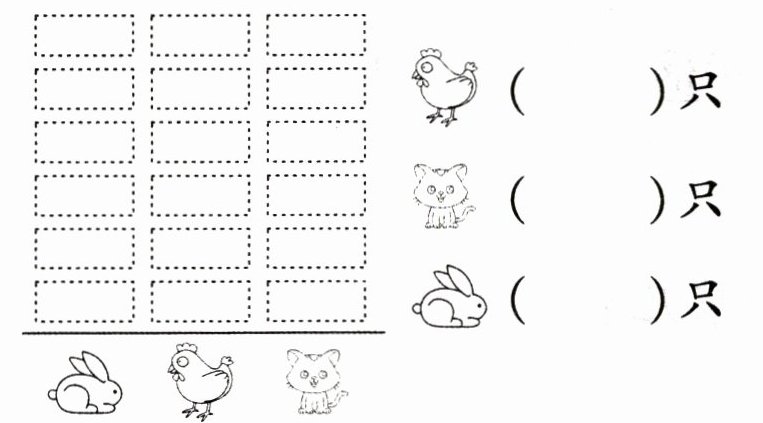 (1) 按小动物的种类分一分,在下面涂一涂,填一填。
