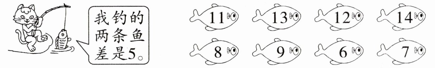 根据题意,小猫钓了两条鱼,这两条鱼上的数字差是5,分别计算这些数字两两之间的差: