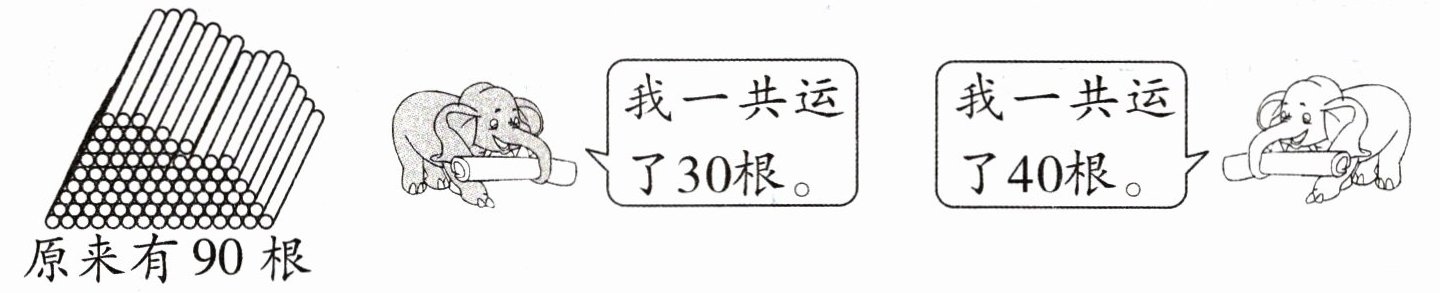 解析:本题考查100以内连减的应用。用木头总数依次减去两头大象运走的木头数,即可求出还剩多少根木头。