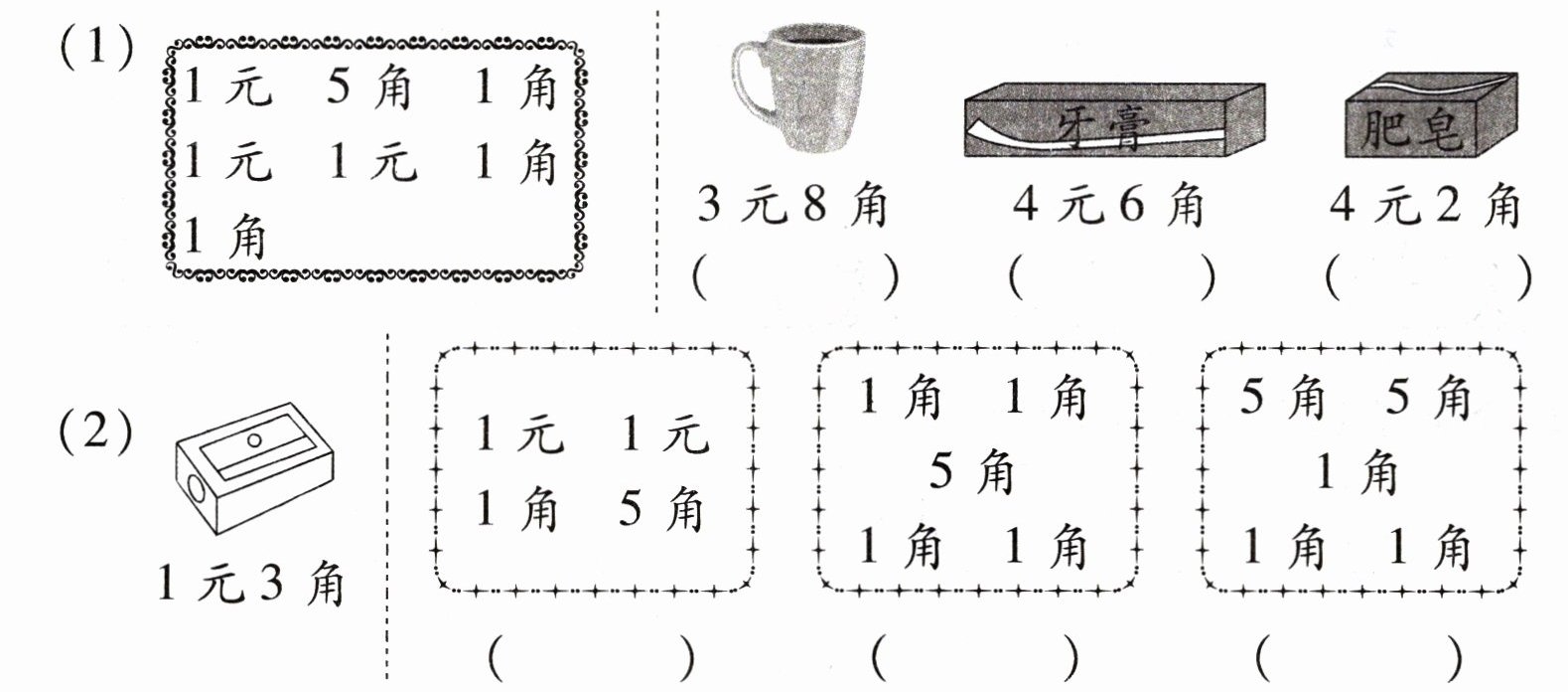 3. 在右边选出与左图相应的物品或钱数,在( )里画“√”。