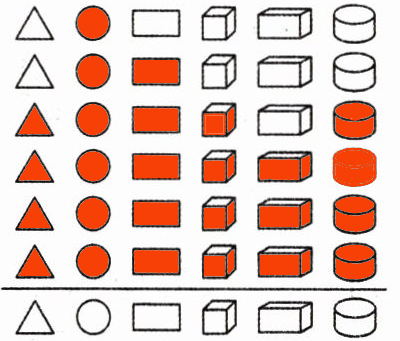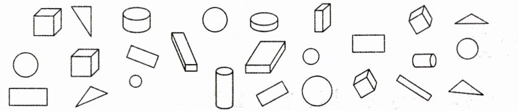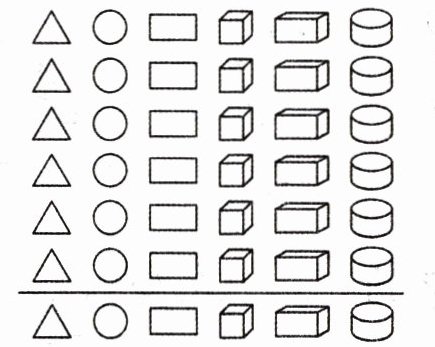 (1) 按形状分一分、涂一涂。 (2) 如果把这些图形分成两组,可以怎样分? 把分组的结果表示出来。