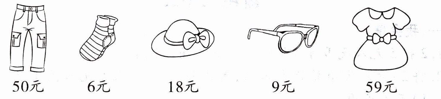 1. 解析:考查减法运算,通过观察图中裤子和裙子的价格,用裙子的价格减去裤子的价格得到差价。