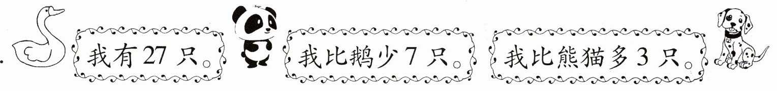 (1)已知鹅有27只,熊猫比鹅少7只,求比一个数少几的数是多少,用减法计算。