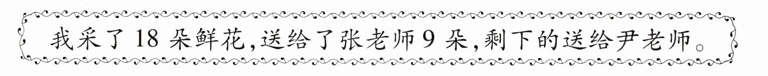 解:已知总共采了$18$朵花,送给张老师$9$朵,送给尹老师的数量为剩下的花,根据减法运算$18 - 9 = 9$(朵)。