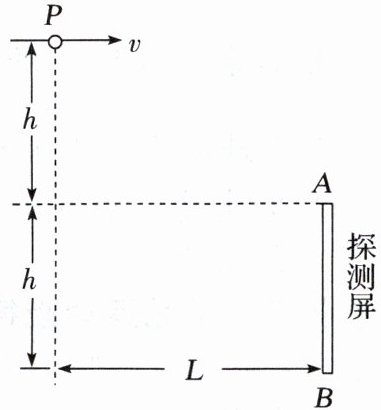 7.(2025·安徽省芜湖市高一期中)在真空环境内探测微粒在重力作用下运动的简化装置如图所示。P是一个微粒源,能持续水平向右发射质量相同、初速度不同的微粒。高度为h = 0.8m的探测屏AB竖直放置,离P点的水平距离为L = 4.0m,上端A与P点的高度差也为h,(g取$10m/s^2)。$则能被屏探测到的微粒的最大初速度是 (