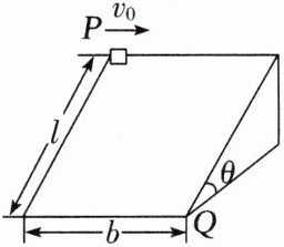 (2025·山东师大附中高一月考)如图所示的光滑斜面长为l,宽为b,倾角为θ,一物块(可看成质点)沿斜面左上方顶点P以初速度v₀水平射入,恰好从底端Q点离开斜面,已知重力加速度为g。则 (