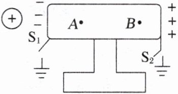 BD [A.导体处于静电平衡状态,处于静电平衡状态的导体内部场强处处为零,所以A、B两点电场强度都为零,故A错误;B.在导体内部,感应电荷产生的附加电场与正电荷在同一点产生的场强等值反向,因为A点距离正电荷较近,根据点电荷场强公式$E=\frac{kQ}{r^{2}}$可知,正电荷在A点产生的场强较大,故$E_{A}>E_{B}$,故B正确;CD.当开关$S_{1}$或者$S_{2}$闭合时,因为导体是在正电荷的电场中处于平衡状态,导体是个等势体,且电势大于零,电子带负电,从低电势流向高电势,即电子都是从大地沿导线向导体移动,故C错误,D正确。]