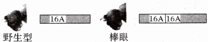 (2024·浙江高考真题)野生型果蝇的复眼为椭圆形,当果蝇X染色体上的16A片段发生重复时,形成棒状的复眼(棒眼),如图所示。