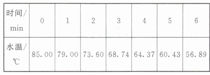 (2025.山东日照期末)日照绿茶是山东“南茶北引”的硕果之一,因其独特的生长环境和气候条件,具有汤色黄绿明亮、栗香浓郁、回味甘醇的特点.冲泡绿茶时,需要注意水温以确保茶汤的色香味达到最佳状态.经验表明,绿茶用85℃的水泡制,等到茶水温度降至55℃时再饮用,可以产生最佳口感.某实验小组为探究在室温下,刚泡好的茶水达到最佳饮用口感的放置时间,每隔1min测量一次茶水温度,得到茶水温度随时间变化的如下数据: