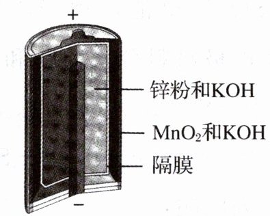 (2024·江苏卷)碱性锌锰电池的总反应为$\text{Zn} + 2\text{MnO}_{2} + \text{H}_{2}\text{O}\xlongequal{\;\;}\text{ZnO} + 2\text{MnOOH}$,电池构造示意图如图所示。下列有关说法正确的是 (