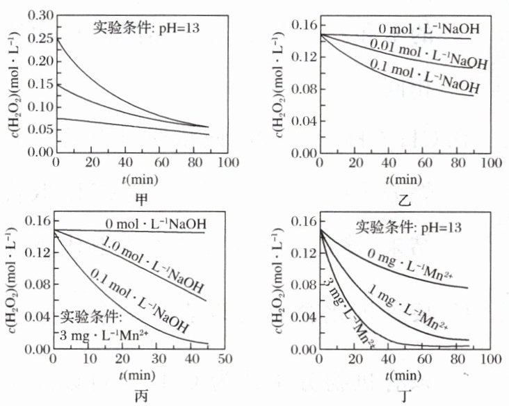 $D.$图丙和图丁表明$,$碱性溶液中$,Mn_2+$对$H_2O_2$分解速率的影响大