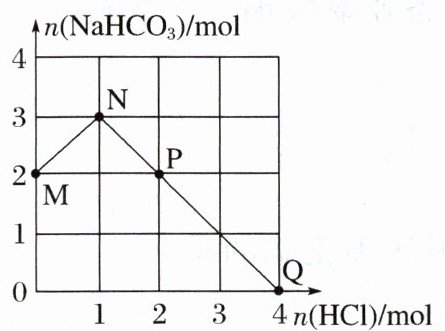 3.(2025·江苏南通·期中)某种天然碱的化学式为$aNa_{2}CO_{3}\cdot bNaHCO_{3}\cdot cH_{2}O$,取一定质量该天然碱溶于水,逐滴加入稀盐酸,溶液中的$NaHCO_{3}的物质的量与加入HCl$的物质的量关系如图所示。下列说法不正确的是 (