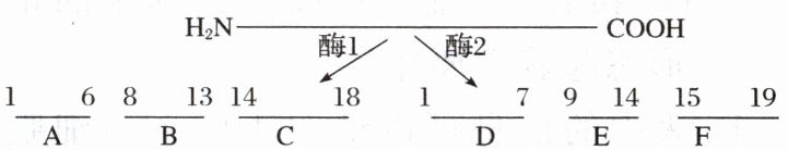 (多选)(2025·高一上·江西宜春期末)某直链多肽含4个缬氨酸$(C_5H_1_1NO_2),$蛋白酶1作用于缬氨酸氨基端的肽键,蛋白酶2作用于缬氨酸羧基端的肽键。该多肽分别经酶1和酶2作用后的情况如图所示,下列相关叙述正确的是 (