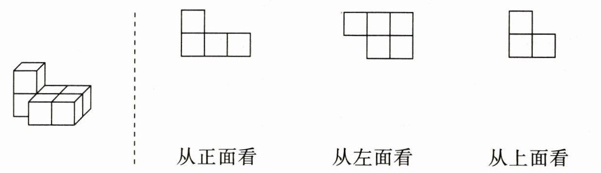 (注:此处需将左侧立体图形分别与右侧三个平面图形按“从正面看”“从左面看”“从上面看”的对应关系用直线连接。由于文本限制,用文字描述连接结果如下:)