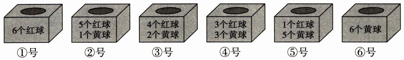 所以从⑤号盒子里摸到黄球的可能性最大,从②号盒子里摸到红球的可能性最大。