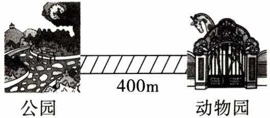 已知公园与动物园之间的距离是$400m$,每相邻两棵树之间相距$5m$。