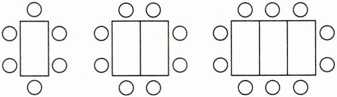 (2)一家餐厅有40张这样的长方形桌子,按照上图方式每5张拼成一张大桌子,则40张桌子可拼成8张大桌子,共可坐(