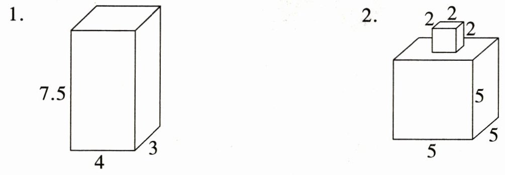 解析:本题主要考查长方体和正方体的表面积与体积的计算。长方体的表面积公式为$S=(ab + ah + bh)×2$,体积公式为$V = abh$(其中$a$为长,$b$为宽,$h$为高);正方体的表面积公式为$S = 6a^2$,体积公式为$V = a^3$(其中$a$为棱长)。对于组合体,其表面积等于大正方体表面积加上小正方体各面面积(小正方体与大正方体接触的面除外),体积等于大正方体体积加上小正方体体积。
