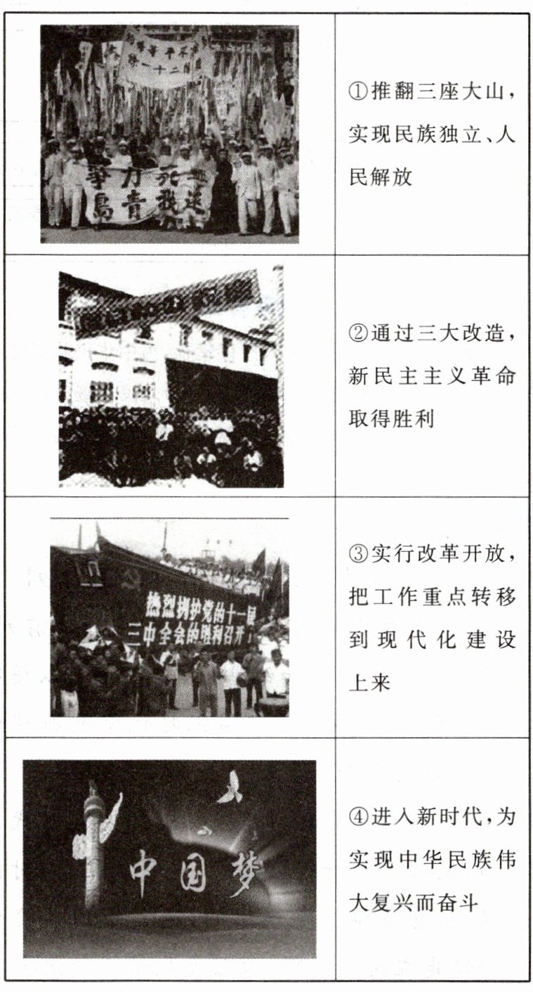 )①解决土地问题 ②完成社会主义革命 ③争取民族独立和人民解放 ④实现国家富强和人民幸福