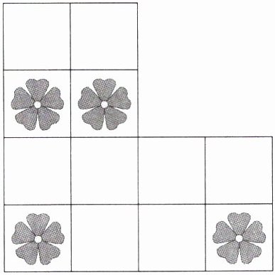 5. 画一画,将下图分成形状和大小都相同的4份,使每一份里都有一朵花。