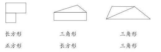 4. 先画一条线,将下面的图形分成我们学过的图形,再填一填。
