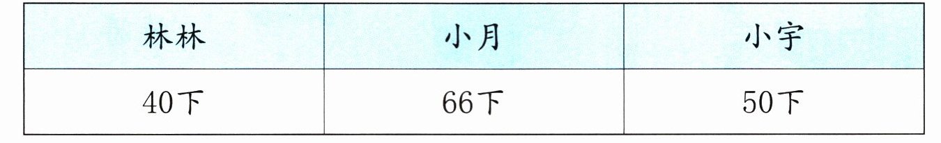 (3)林林比小宇少跳多少下? $50-40=10$ (下) 答案不唯一