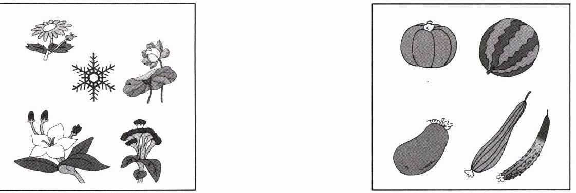 下面的每幅图里各有一个和其他不同类。你能找出来吗?