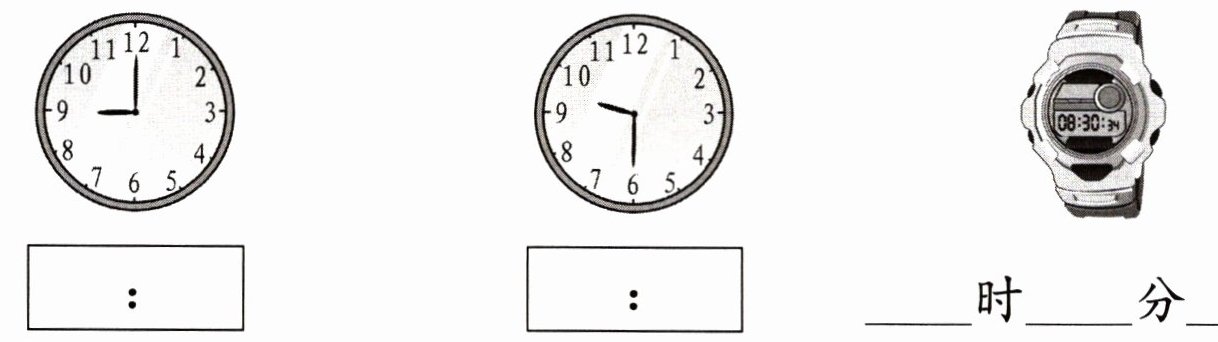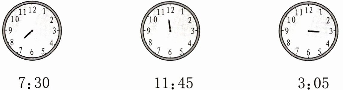 5. 根据所给的时间在钟面上添画分针。