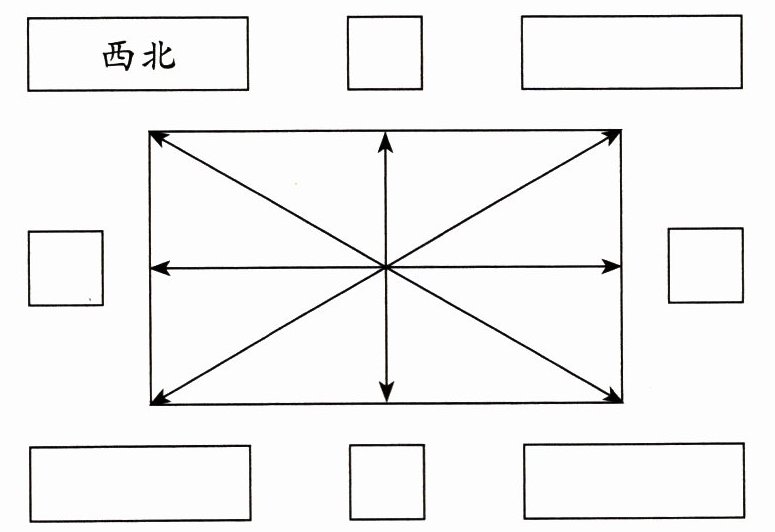 (2)小兔在小猴的(西北)面,小象在小猴的(南)面。