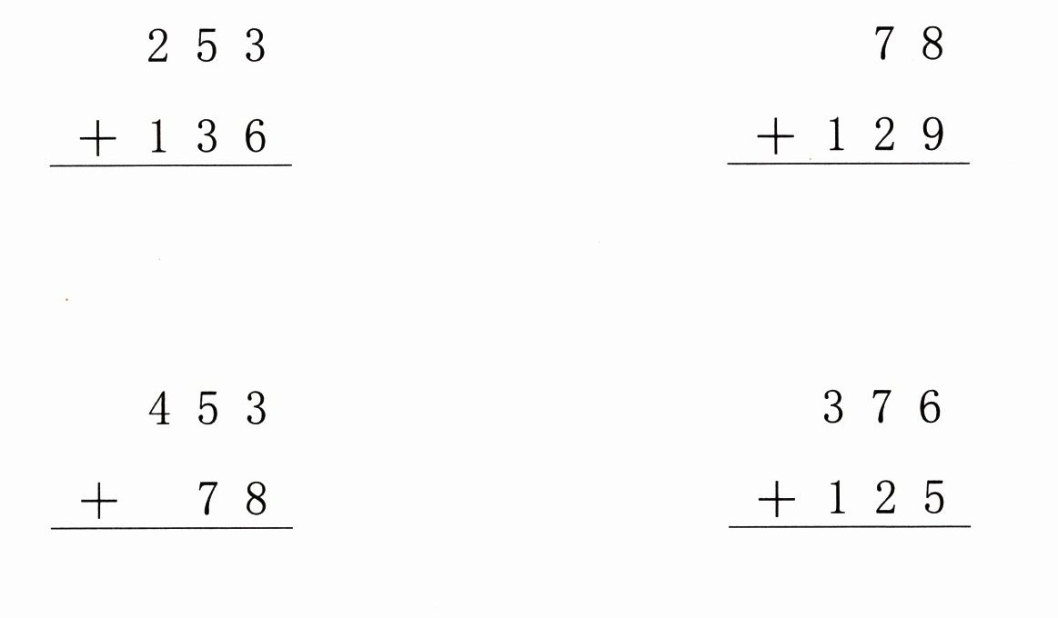 对于每一个加法算式,都需要将两个数的个位、十位、百位分别相加,注意进位。
