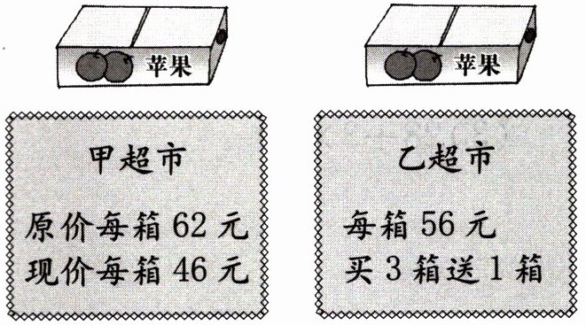 已知乙超市每箱苹果的价格是56元,买3箱送1箱。