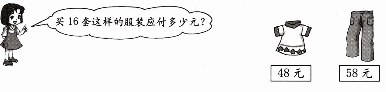 16套服装的总价格为:$106 × 16 = 1696 \text{(元)}$。