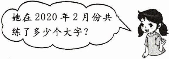 其次,计算芳芳在2020年2月份共练了多少个大字,