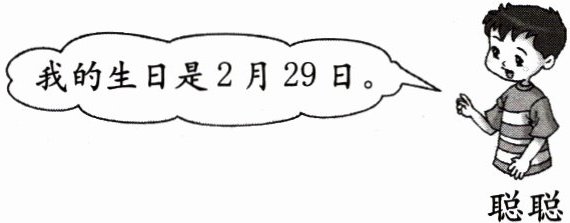 聪聪的生日是2月29日,只有闰年才有2月29日,平年没有,而闰年是每四年一次,所以聪聪每四年才能过一次生日。