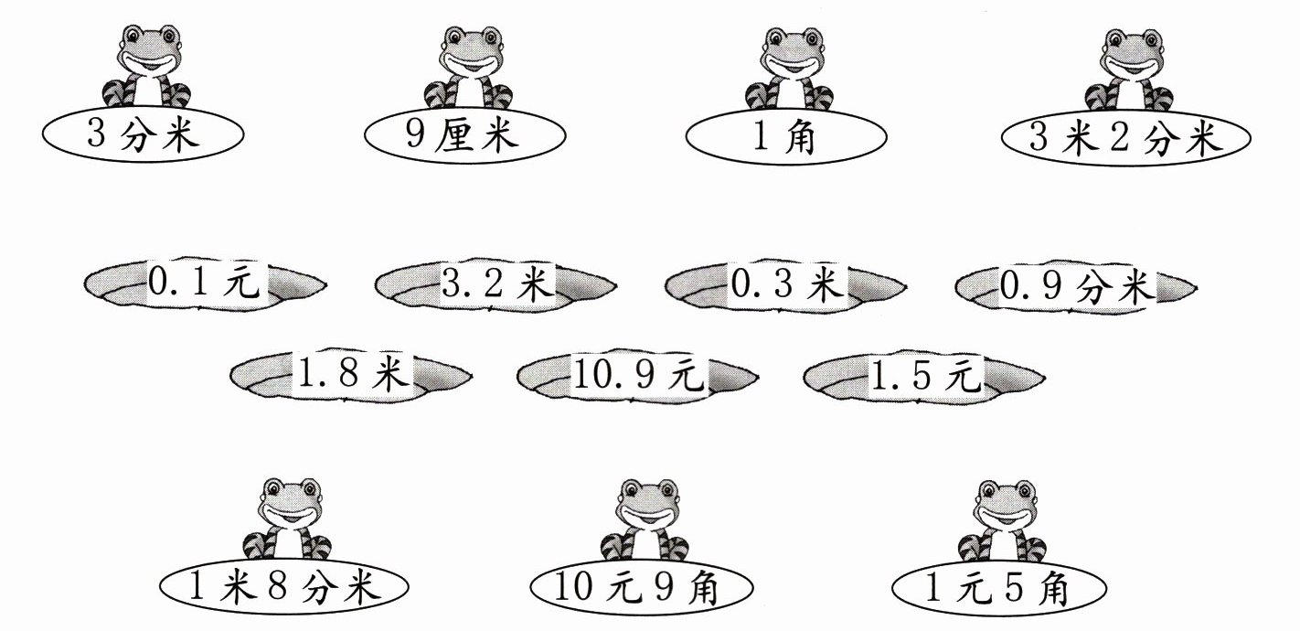 4. 青蛙应该分别跳到哪片荷叶上?连一连。