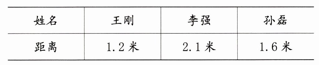 答:王刚跳了1米2分米,李强跳了2米1分米,孙磊跳了1米6分米,李强跳得最远,王刚跳得最近。