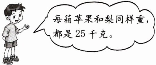 已知苹果的箱数以及每箱的重量,根据$总重量 = 每箱重量×箱数$,可算出苹果的重量;同理算出梨的重量,最后将两者相加。