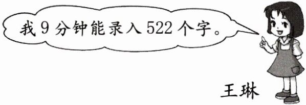 已知王琳$9$分钟能录入$522$个字,根据“工作效率$=$工作总量$÷$工作时间”,可求出王琳每分钟录入的字数为$522÷9 = 58$(个)。