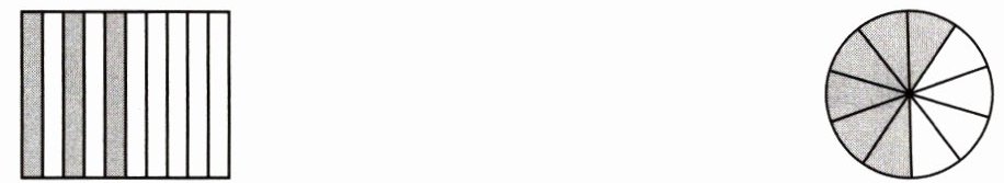 2. 分别用分数和小数表示下面各图中的阴影部分。