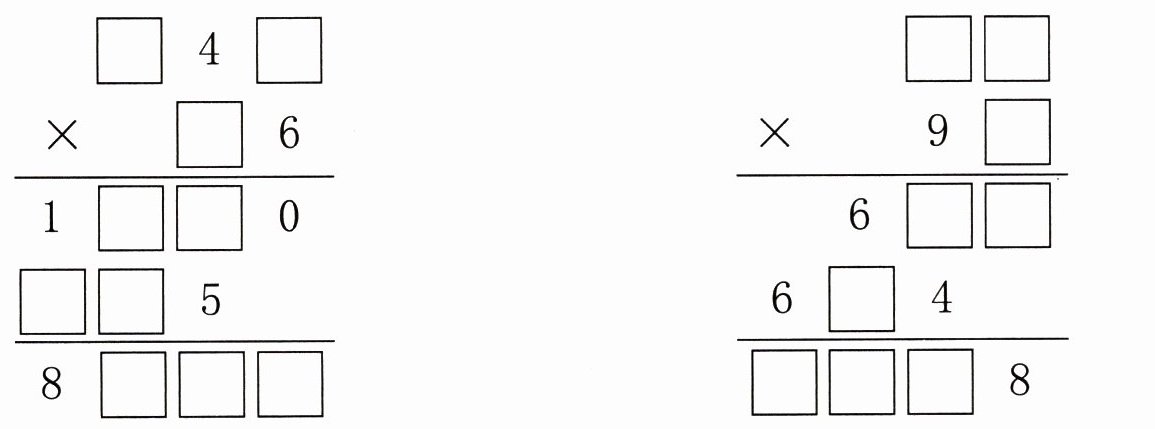 1. 从积的个位是$8$,且其中一个因数个位是$□$,另一个因数个位是$□$,$□×□=□8$,又因为$□□×9=\ 6□4$,$72×9 = 648$,所以第一个因数是$72$。