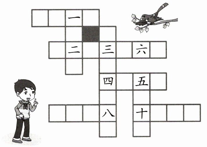 右图中有十个成语,请你在空格里填入合适的字,把成语补充完整。