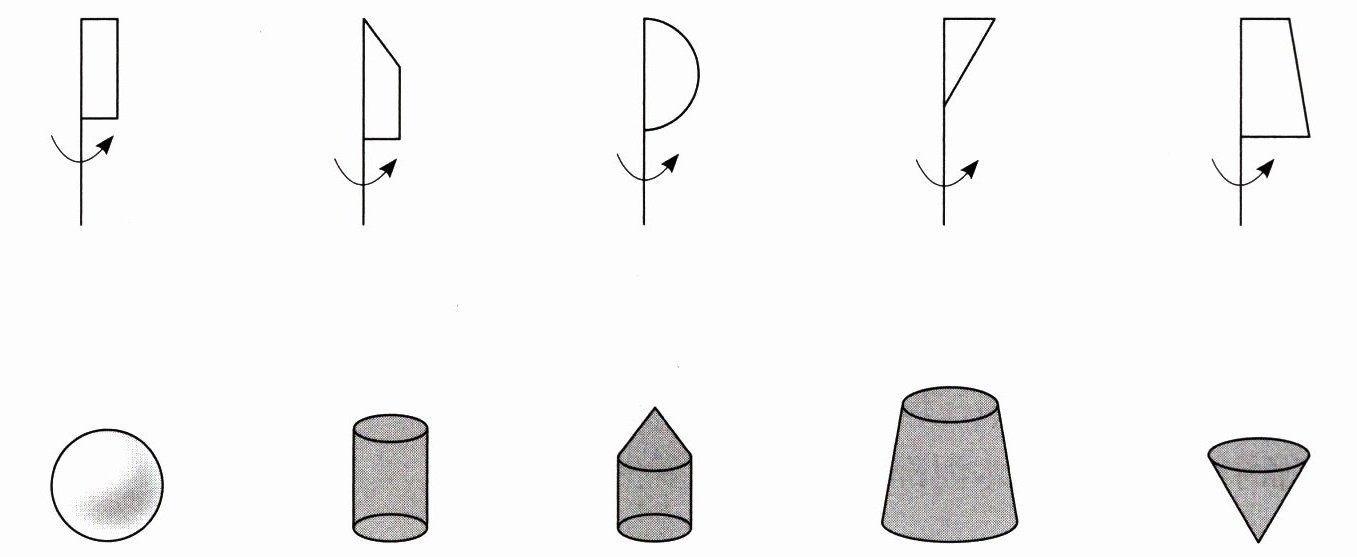 第一个平面图形(长方形绕一边旋转)连圆柱;
