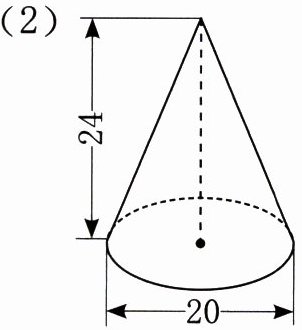 对于(2),已知底面直径为$20cm$,则半径$r = 20÷2 = 10cm$,高$h = 24cm$,代入公式计算体积。