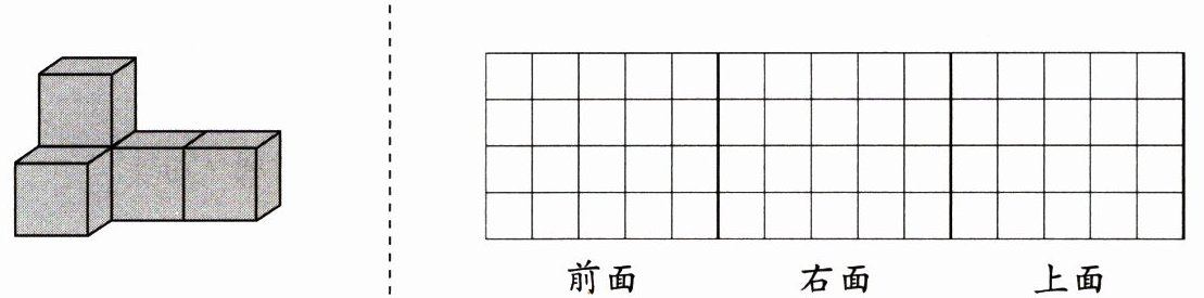 3. 在方格纸上画出从左图的三个方向看到的图形。