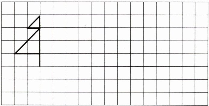 4. 以图中的“树干”为对称轴,先画出“小树”的另一半,再把完整的“小树”向右平移 6 格,最后再把平移后的“小树”绕树干下端点顺时针旋转$90^{\circ}$。